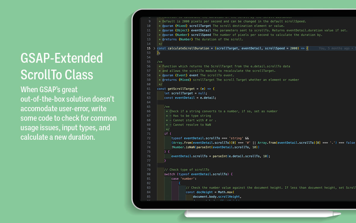 scrollTo was built to handle common user inputs and convert them, if possible, to be consumable by GSAP's scrollToPlugin. customEvents was built to consistently handle custom events from a global level with a list of available events.